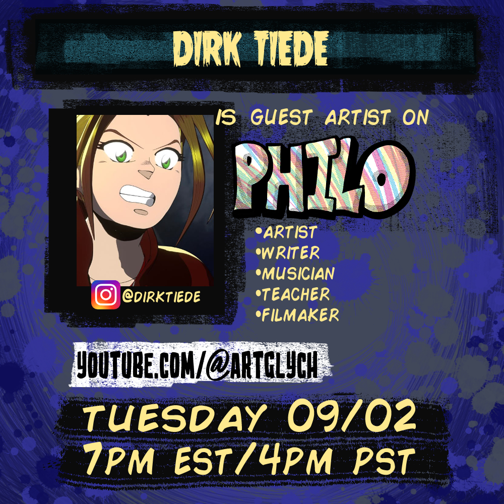 Tuesday we have Dirk Tiede joining us on Philo! There’s a slap fight between inventors in the time travel phone booth. Join us to make sense of that sentence! http://youtube.com/@artglych