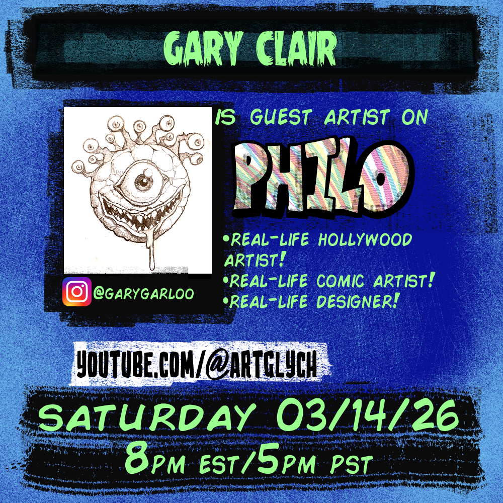 This Saturday, we’ll have Scott Dalton joining us all the way from California! We’ll talk art and draw Philo! See you then! http://youtube.com/@artglych