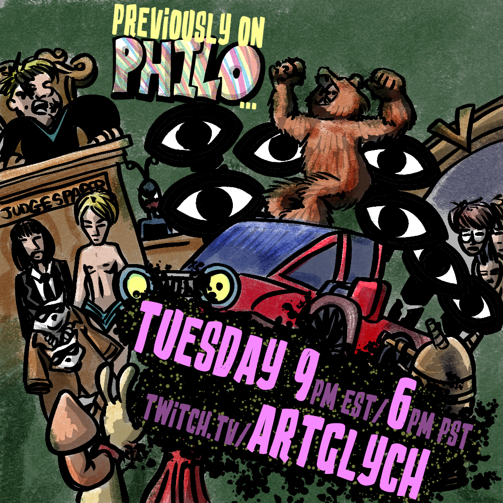 Tuesday we have Teague Tysseling joining us for more hijinks in the Philo universe. We have Bone Dogs, we have a Venom-Octopus, and an Olive Oyl Head Thing, Philo deflated, and the Mycelium Network is still singing- Where are we going? YOU DECIDE! http://twitch.tv/ArtGlych