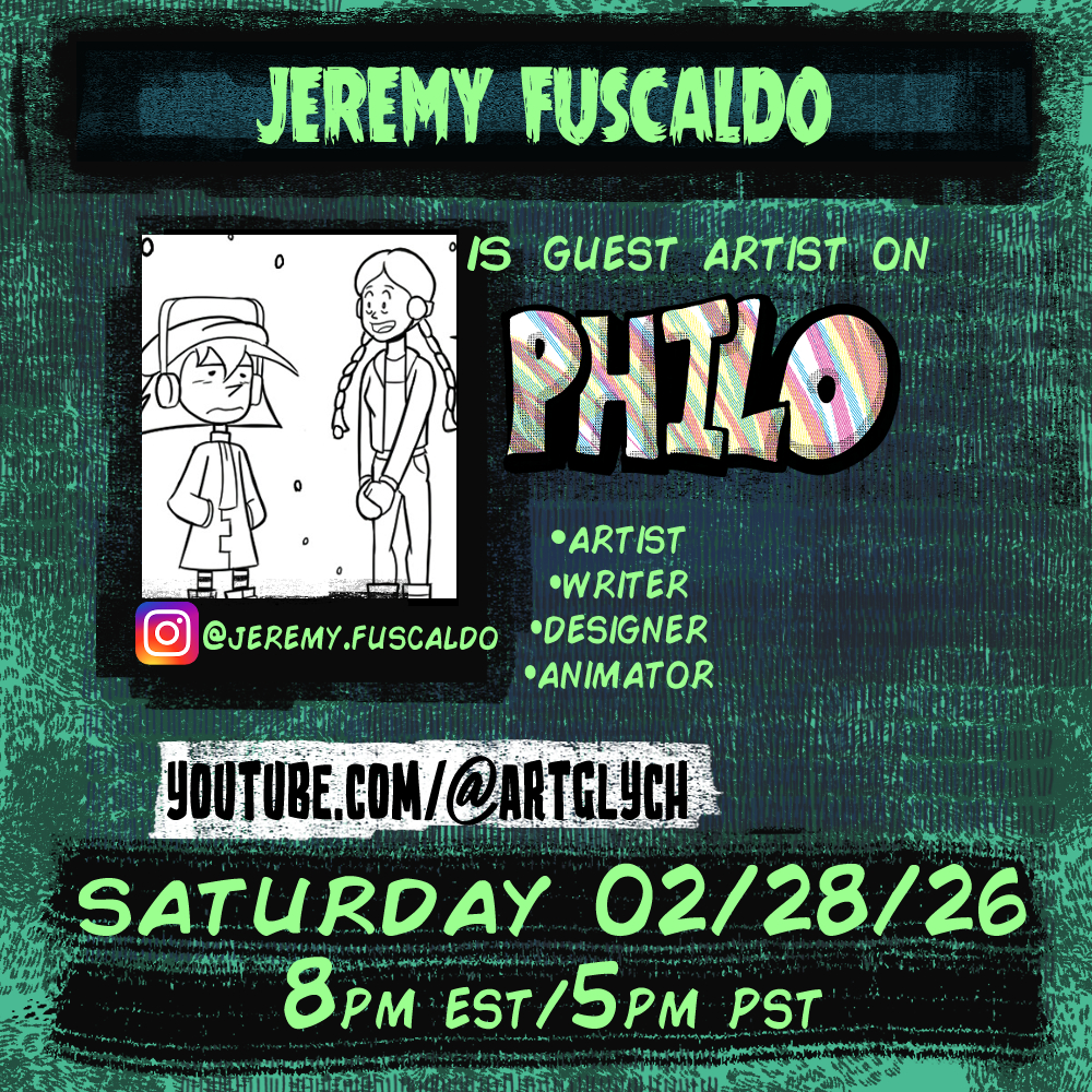 This Saturday, we’ll have Scott Dalton joining us all the way from California! We’ll talk art and draw Philo! See you then! http://youtube.com/@artglych